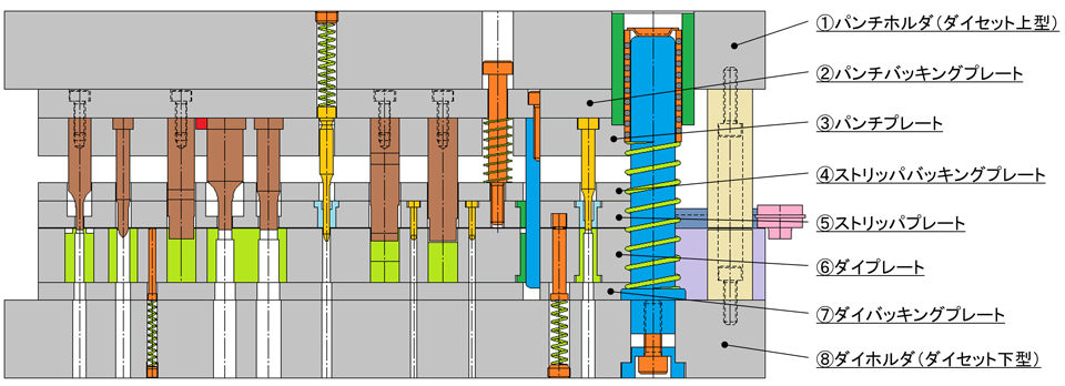 | ①パンチホルダ | 上型全体のベース(プレス機のスライドへの取り付け) |