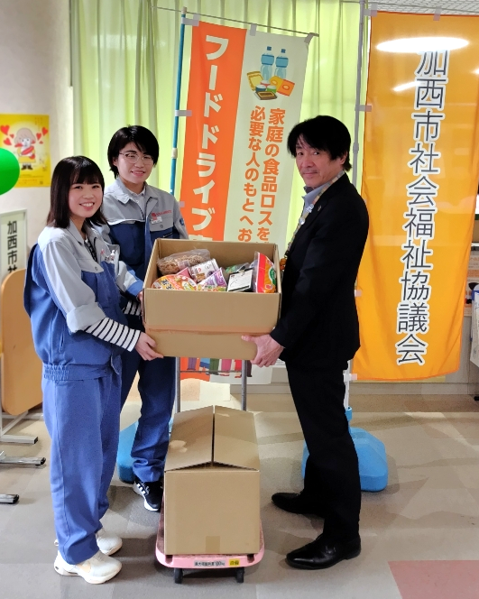 工場社員より集めた食品78点を、1/24(水)に加西市社会福祉協議会へ寄付しました。兵庫工場では、
