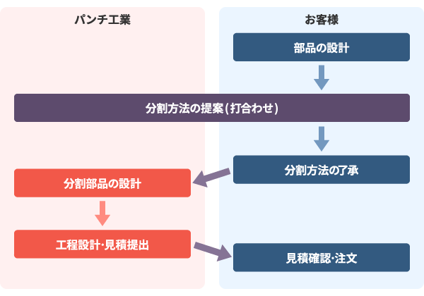 (3)お客様と分割方法をご相談のうえ、接合前の部品を設計します。